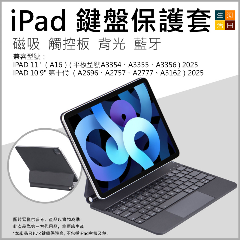 提升您的 iPad 使用體驗!這款專為 iPad 11吋 (A16) 及 10.9吋 (第十代) 設計的磁吸背光鍵盤保護套,是您移動辦公與日常娛樂的最佳拍檔。